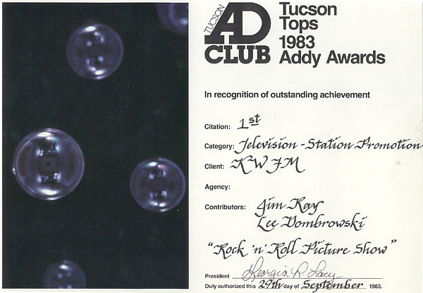 "The Rock 'n Roll Picture Show" wins an Addy from the Tucson AD Club.